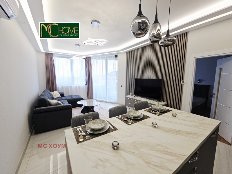 Апартаментът се продава напълно обзаведен, с чисто нови мебели и електроуреди от висок клас.