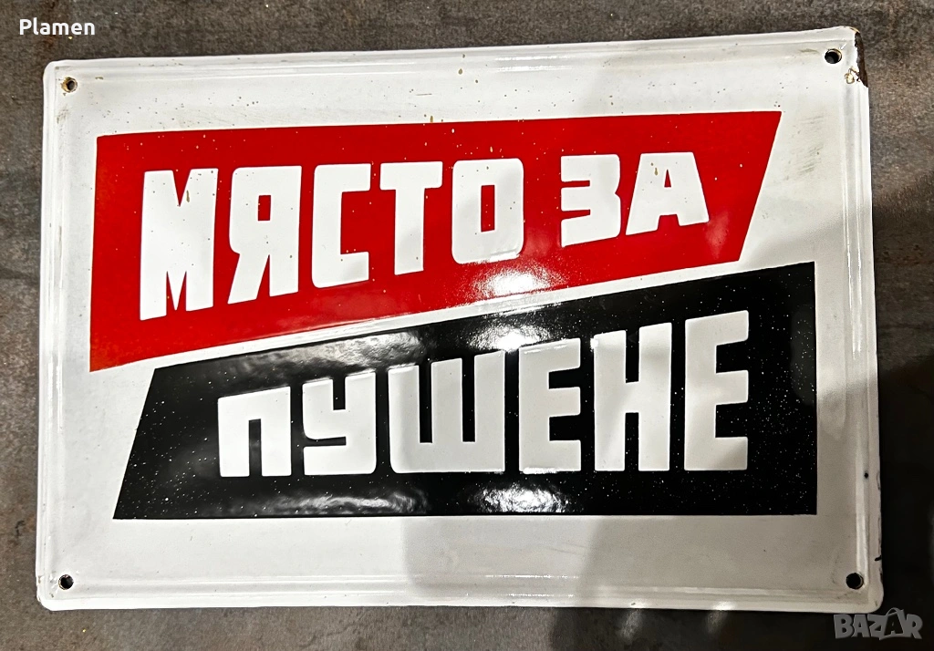 ЕМАЙЛИРАНА ТАБЕЛА ТАБЕЛКА МЯСТО ЗА ПУШЕНЕ, снимка 1 - Антикварни и старинни предмети - 53343344 ЕМАЙЛИРАНА ТАБЕЛА ТАБЕЛКА МЯСТО ЗА ПУШЕНЕ, снимка 2 - Антикварни и старинни предмети - 53343344 1/2