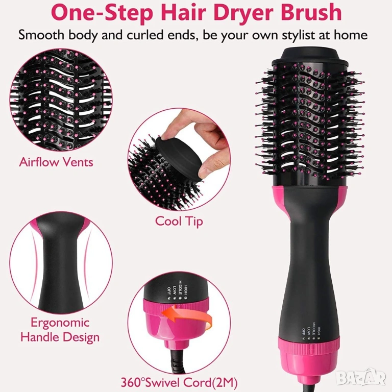 Четка сешоар с горещ въздух 2 в 1 → Обява 53343471