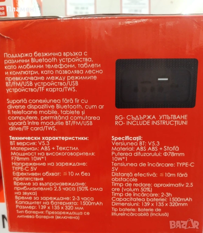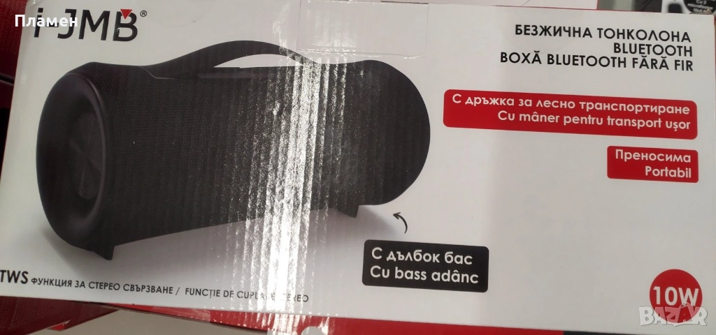 Преносим високоговорител с Bluetooth връзка, вграден USB и слот за TF карта, радио FM и дълбок бас звук с мощност от 10 вата. Идеален за слушане на музика навсякъде.