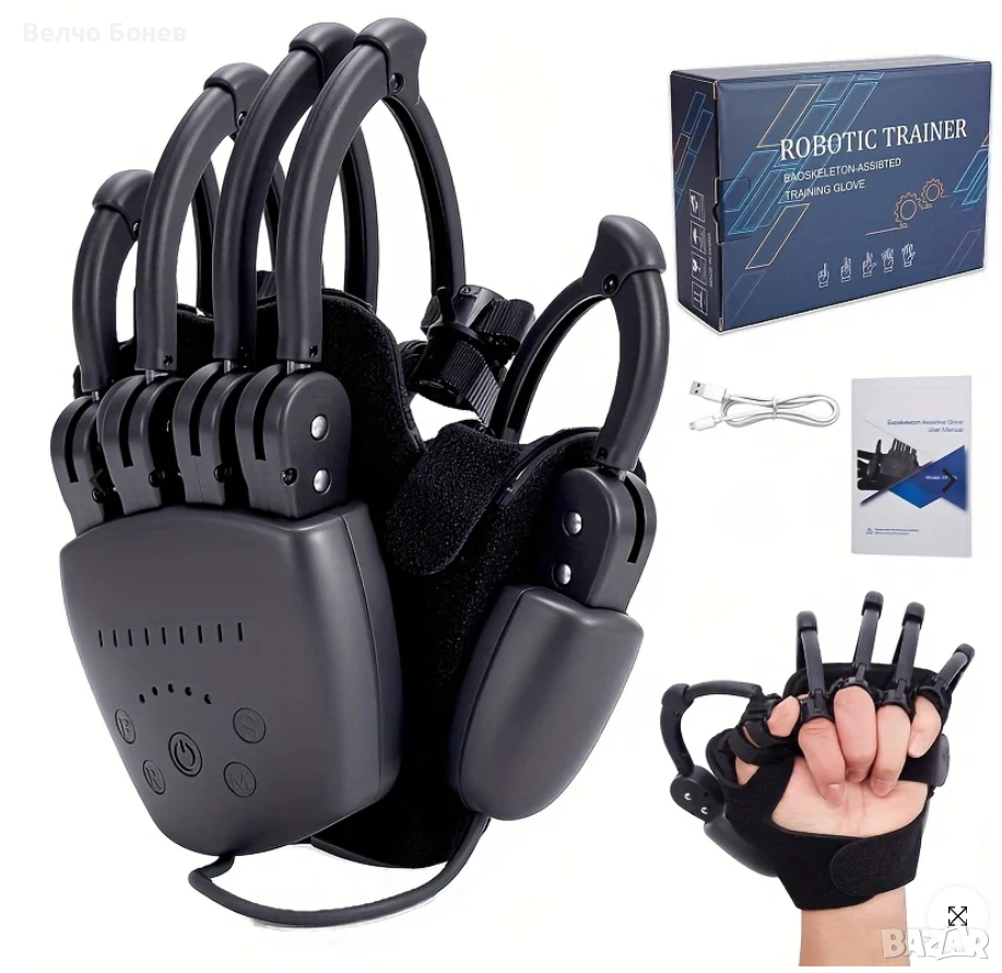 Продавам роботизирана ръкавица за рехабилитация на ръката и пръстите от Soooq, предназнаен за ЛЯВА РЪКА, размер L.