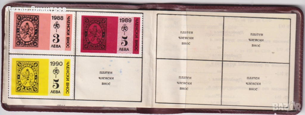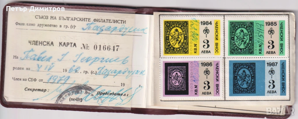 Членска карта Съюз на Българските Филателисти.