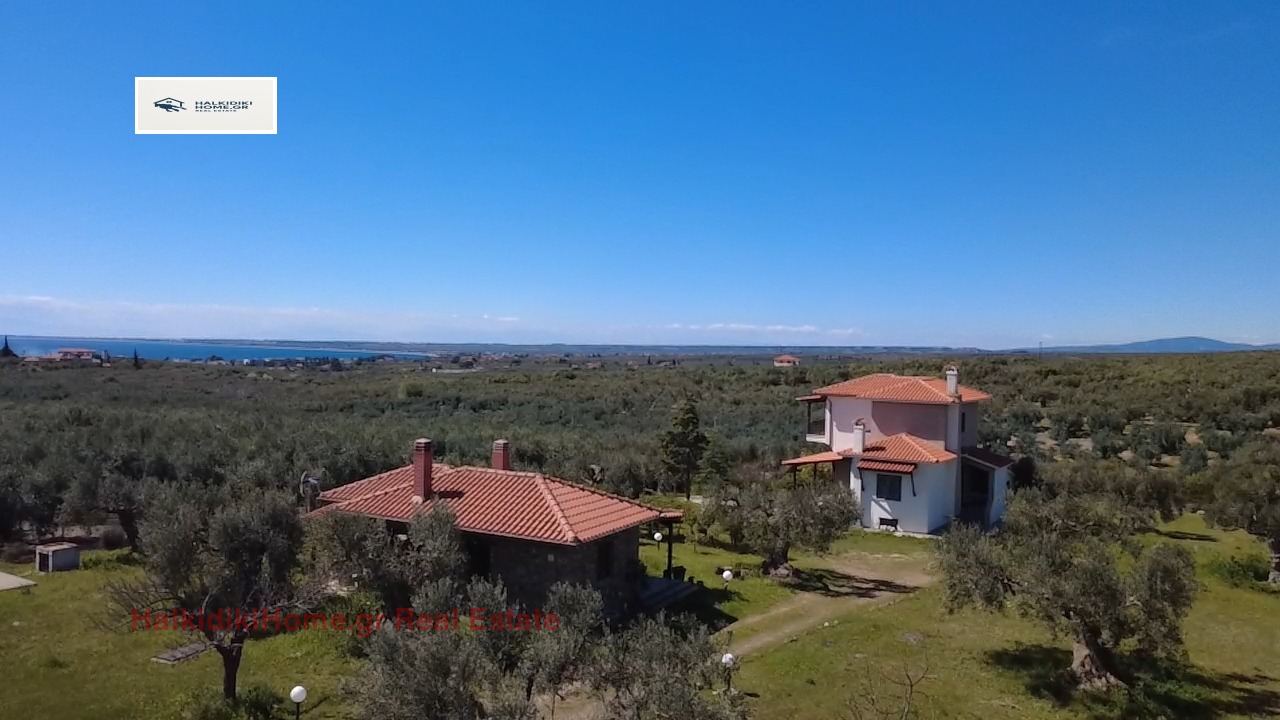 Геракини Халкидики за продажба самостоятелна къща от 180м2 заедно с къща за гости от 37м2 в парцел от 5800м2 само на 1 километър от морето.