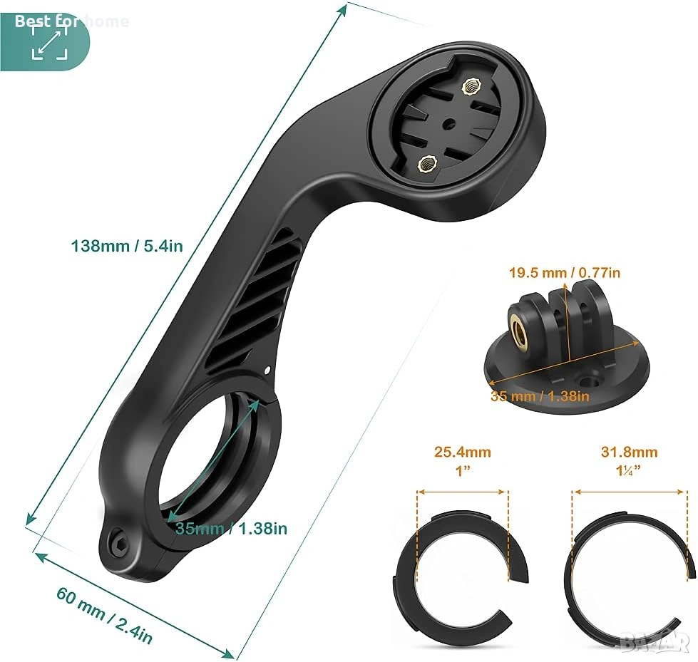 Преден монтаж TUSITA, съвместим с Garmin Edge GPS велокомпютър, XOSS G/G+, iGPSPORT - Кормило за колоездене 25.4 мм 31.8 м.