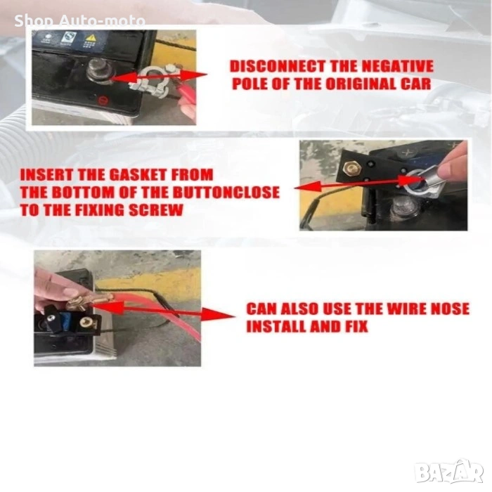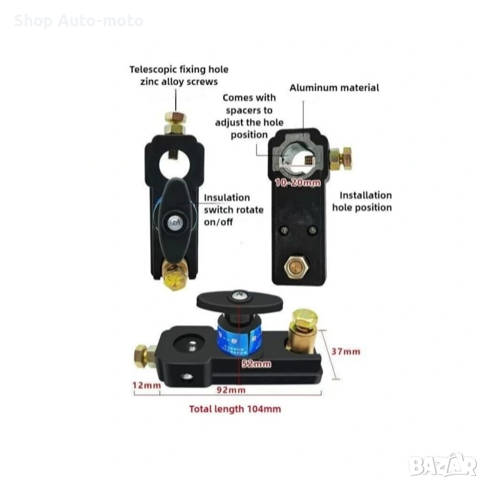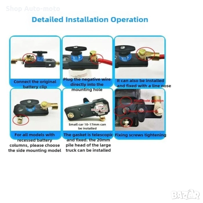 Прекъсвачът е изработен от висококачествена ABS пластмаса и масивни медни конектори, което гарантира стабилен контакт, надеждност и дълготрайна употреба. Монтира се директно върху положителната клема, без нужда от допълнителни кабели или инструменти.
