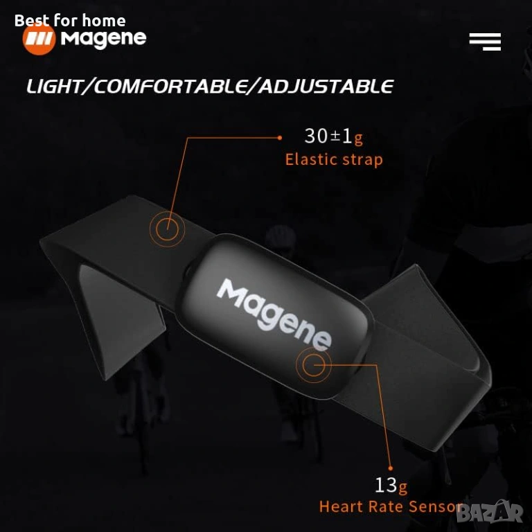 Пулсомерът Magene H003 (H64 нова версия) може да се свърже и с велокомпютри, спортни часовници и фитнес уреди, като велокомпютър Magene C506 и много други.