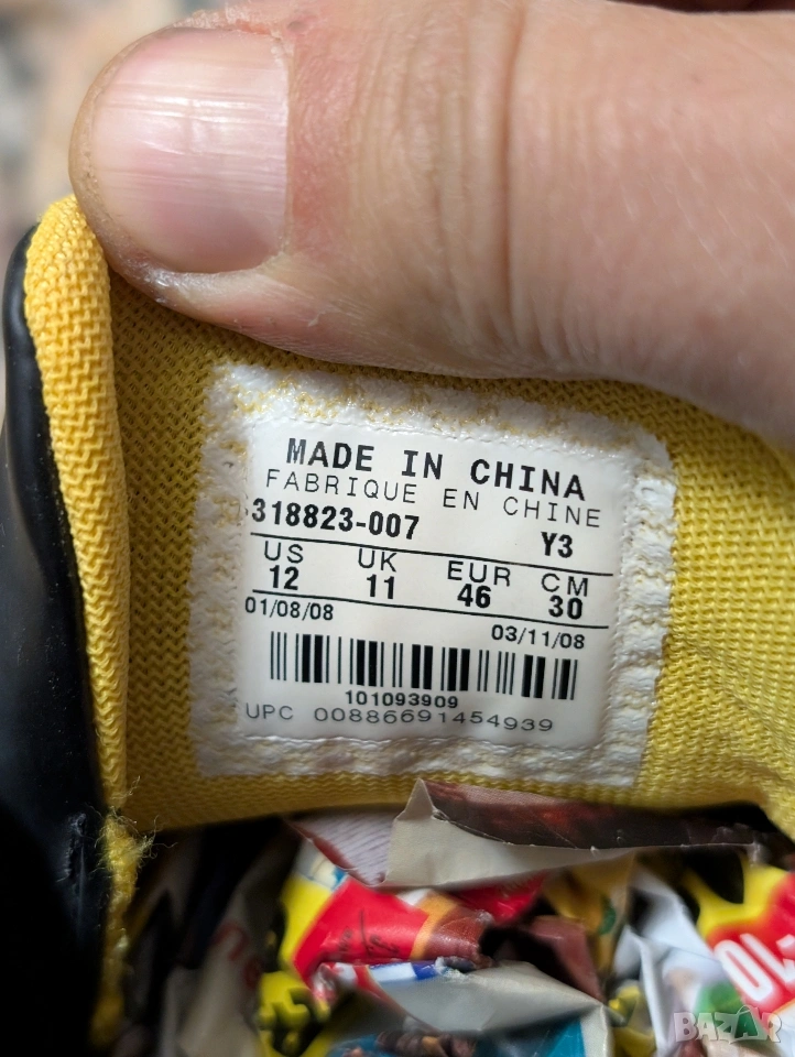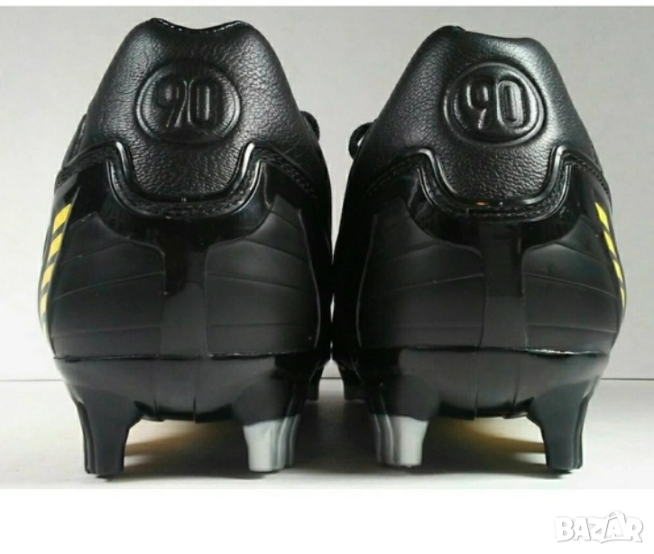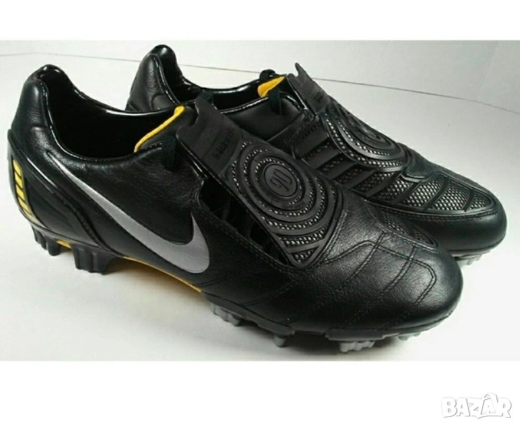 Nike Total 90 Laser II в черно-жълта разцветка. Тези обувки за футболно игрище с твърда настилка (FG) са били популярни около 2008 г. и са известни със своя отличителен дизайн и функционалност.