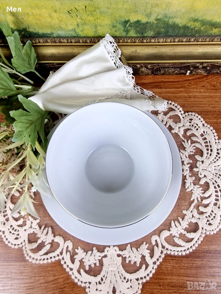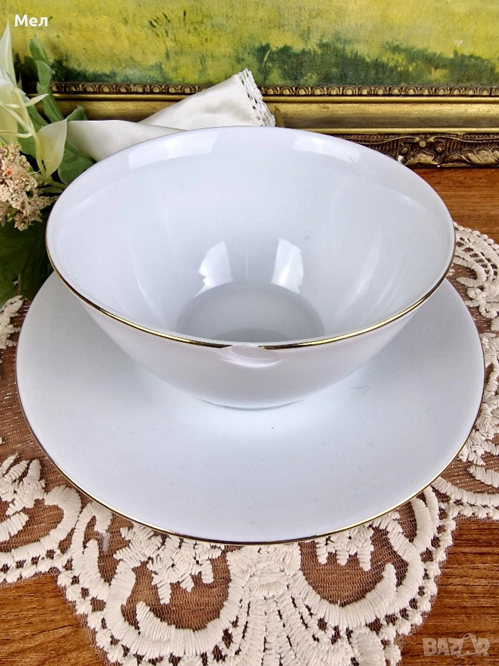 Страхотен бял, немски порцелан с непокътната позлата!