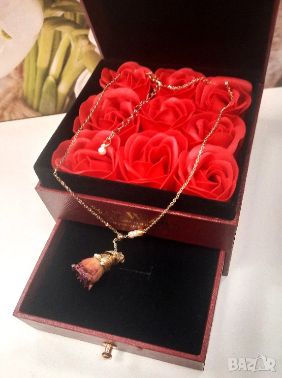 💎 Възможност за бутиково поднасяне в кутия за бижу с вечни рози
