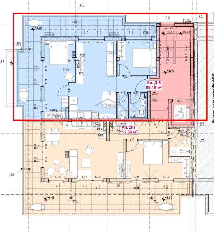 Жилището е с площ от 128,71 кв.м, разположен на четвърти етаж и се състои от светла дневна с кухненски бокс, две спални, баня/WC и голяма тераса, от която се открива гледка към гората.