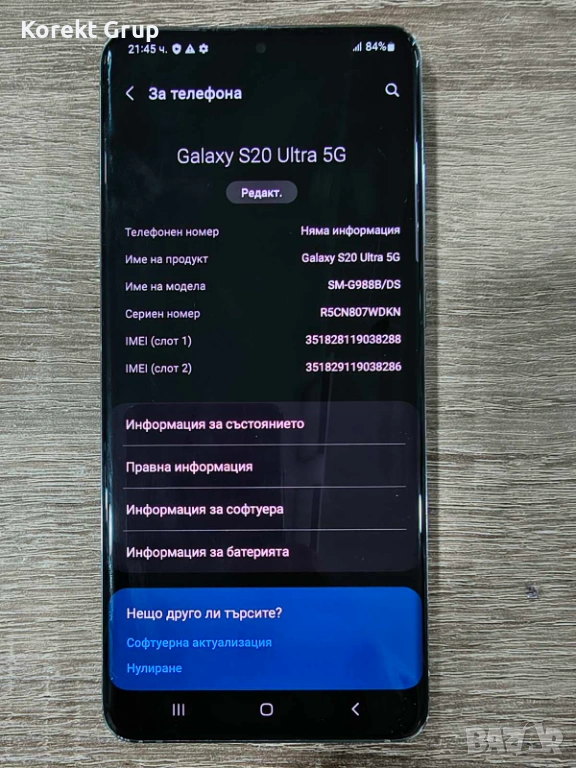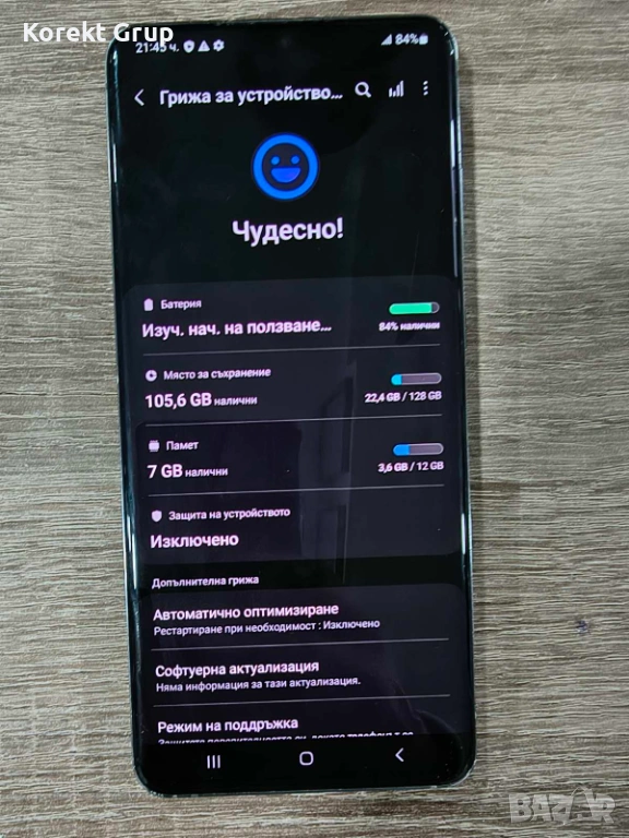 Телефона има забележки по износена задна част на телефона има и леки забележки по дисплея леки драскотини но не са дълбоки.Изпращаме с еконт с преглед и тест и 10 % отстъпка от цената за доставка