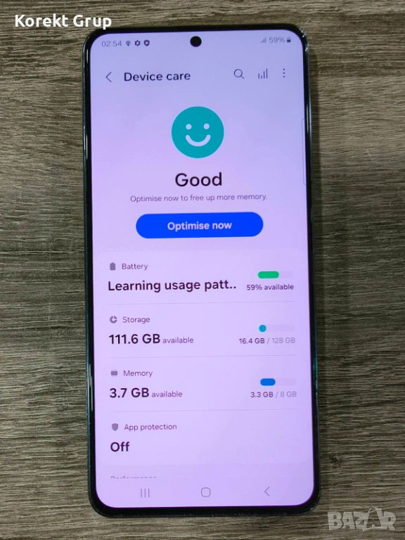 Телефона е в отлично състояние без забележки както визуално така и работно състояние.Има вградена 128гб вътрешна памет и 8гб рам памет.Може да се види и на място за гр.Варна може да се прати и по еконт с преглед и тест..