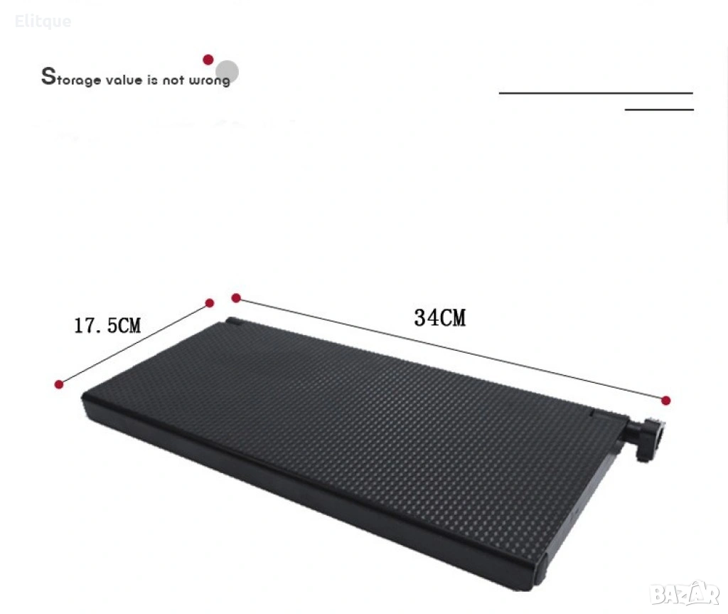 Практична сгъваема поставка за рутер, дистанционно или ТВ приемник Удобна и функционална сгъваема поставка, подходяща за подреждане на рутер, ТВ приемник, дистанционни управления и други аксесоари. Благодарение на голямата си площ и стабилна конструкция, тя помага да поддържате пространството около телевизора или бюрото подредено и организирано. Със своя изчистен дизайн, правоъгълна форма и черен матов цвят, поставката се вписва лесно във всеки интериор – модерен или класически. Лека и компактна, тя може да се сгъва при нужда, което я прави изключително практична. Характеристики: Материал: ABS пластмаса Цвят: черен, матов Размери: 34 × 17.5 см Тегло: 103 г Предимства: Подходяща за рутер, ТВ приемник и дистанционни Голяма и стабилна повърхност Сгъваем дизайн за лесно съхранение Стилен и изчистен външен вид Доставка с Еконт с опция преглед до 3 работни дни.