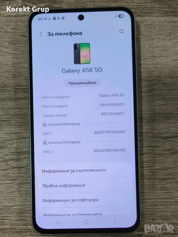 Samsung Galaxy A56 перфектно състояние без забележка вътрешна памет 128гб и рам памет 8гб,телефонът не е лизингов,може да се види на място във гр.Варна или да се прати по еконт с преглед и тест.