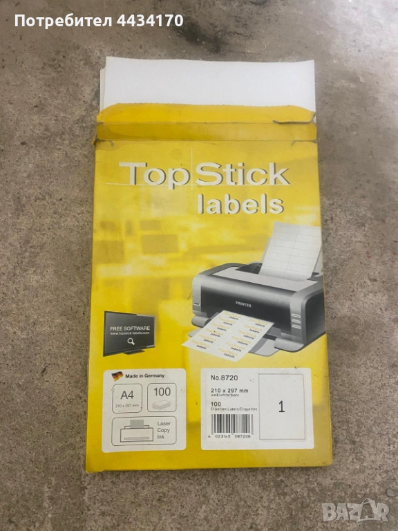 Продавам хартия за принтер със самозалепващи се етикети. Идеални за отпечатване на адреси, цени, баркодове или за организиране на папки и кутии.