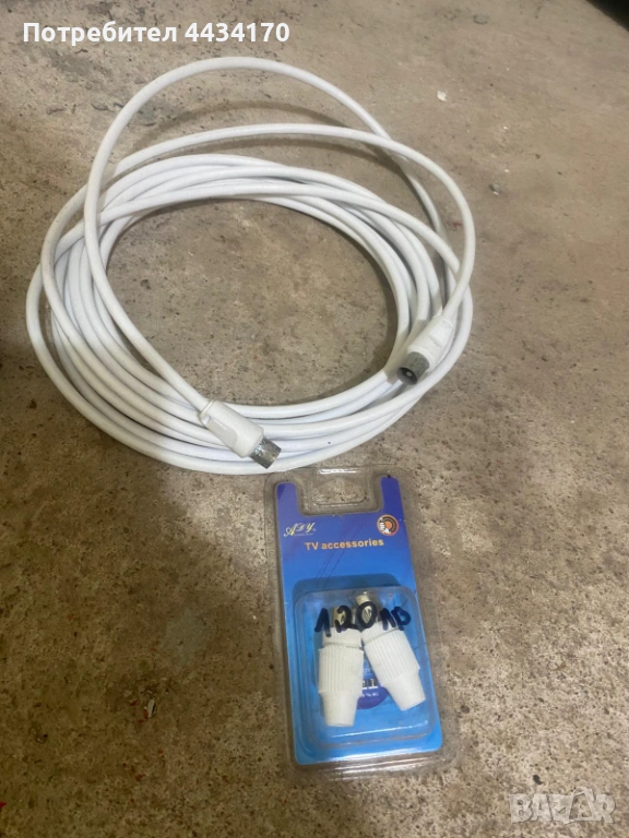 Продавам надежден антенен кабел за телевизия, в комплект с допълнителен накрайник/адаптер. Идеален за свързване на телевизор, приемник (receiver) или радио към кабелна мрежа или антена.