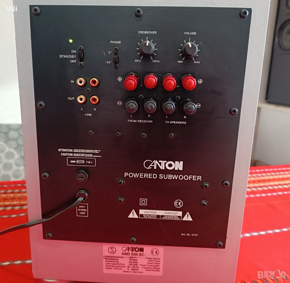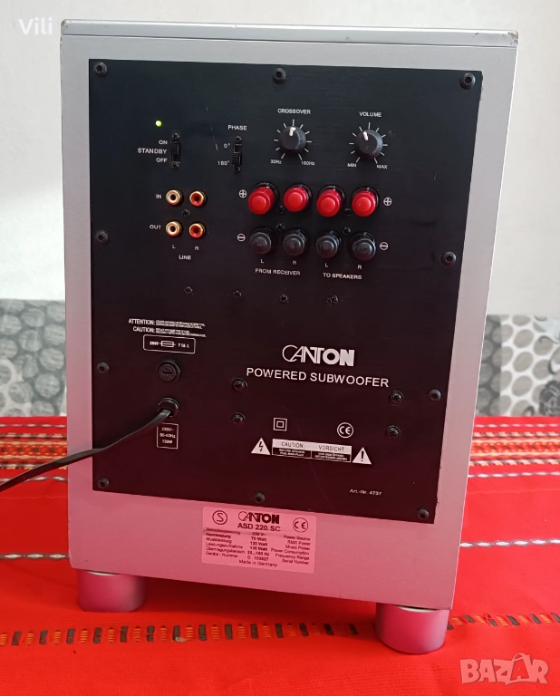 Продавам качествен активен субуфер Canton ASD 220 SC, произведен в Германия–идеалното допълнение към домашно кино или стерео система.Моделът е известен с чистия си,дълбок и контролиран бас.