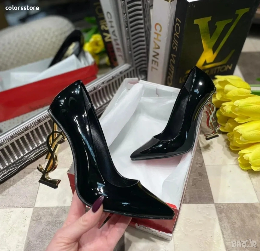 Обувки на ток - черен лак със златист ток - Y1L → Обява 53346164