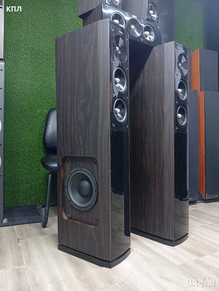 Продавам комплект Jamo S-606 5.0 в перфектно техническо и визуално състояние като нови в комплект с оригинални стойки шпайкове и подложки Jamo S 606 е част от успешната серия S 600 на Jamo и е известна със своя добър баланс между цена, дизайн и качество на звука. Тя е проектирана да осигурява мощен звук, който запълва помещението, без да е задължително добавянето на отделен субуфер.Тонколоната е със стилен датски дизайн, който включва елегантен преден панел с гланцово (piano black) и в този случай завършек красив фурнир Венге. При интерес може да се види и тества на място.
