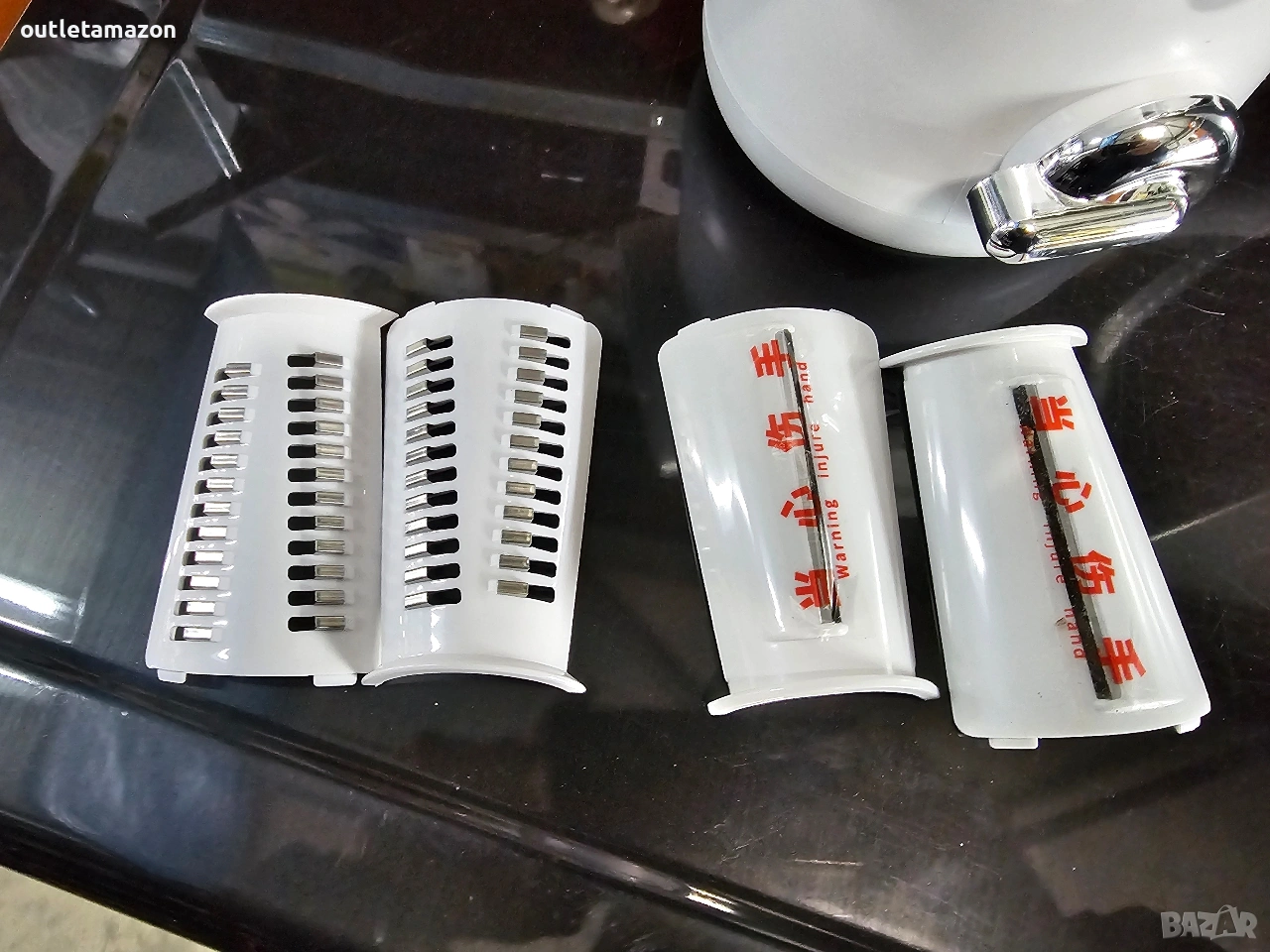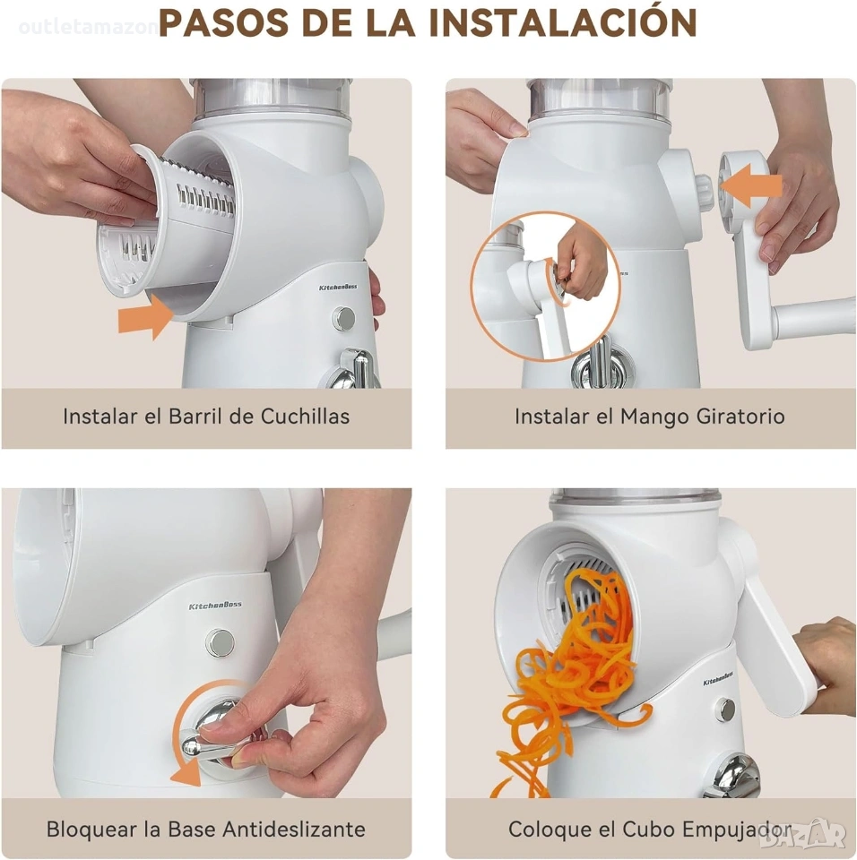 ЛЕСНО ДЕМОНТИРАНЕ И ПОЧИСТВАНЕ: Не докосвайте острите остриета на кухненската ренде директно с ръце по време на разглобяване и почистване, за да избегнете нараняване. Можете да използвате гъба и почистващ препарат за почистване. (Забележка: Не използвайте съдомиялна машина за почистване, не използвайте вода над 60℃ за почистване и е строго забранено стерилизирането на частите на кухненското ренде при висока температура).