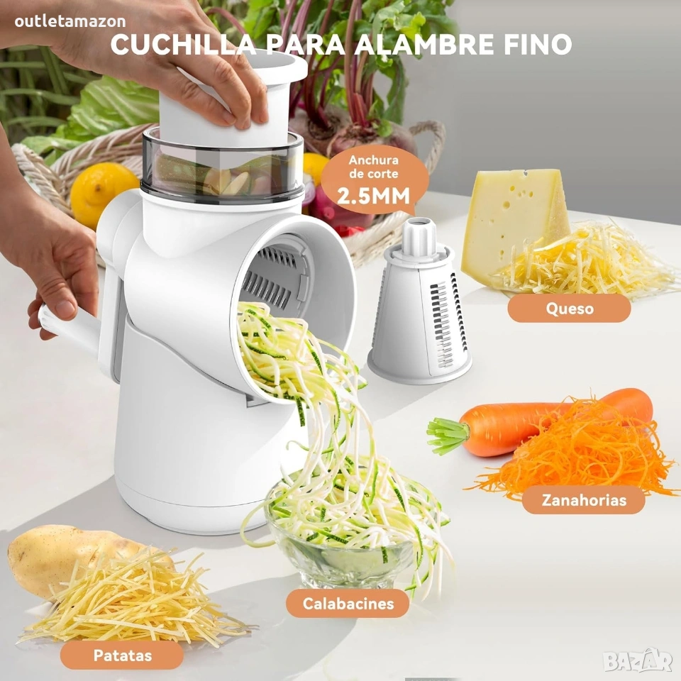 МАТЕРИАЛ С ВИСОКОКАЧЕСТВЕНО КАЧЕСТВО: Острието на зеленчукорезачка е изработено от неръждаема стомана, която е здрава и остра. Останалите части са изработени от ABS пластмаса, която е твърд и екологичен материал и не съдържа вредни вещества като BPA