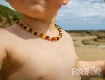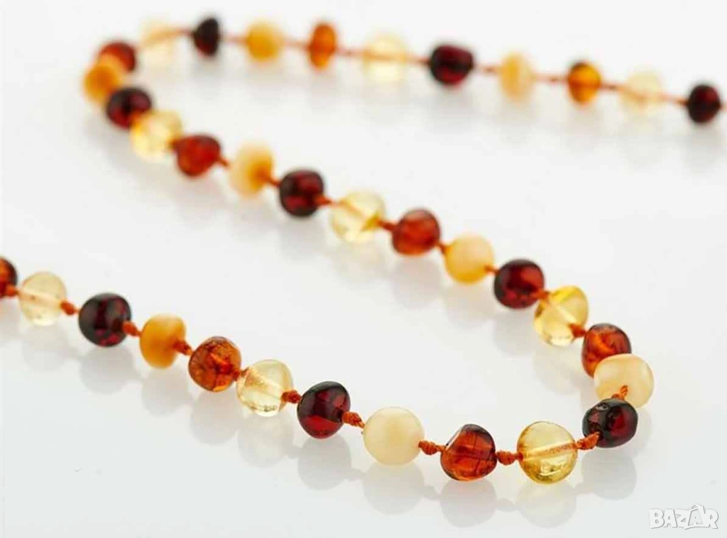 Вариант а. Детски - бебешки герданчета от 100% натурален балтийски кехлибар за безболезнено никнене на зъбки и колики - цвят Multicolor - вишна, коняк, лимон и мед.