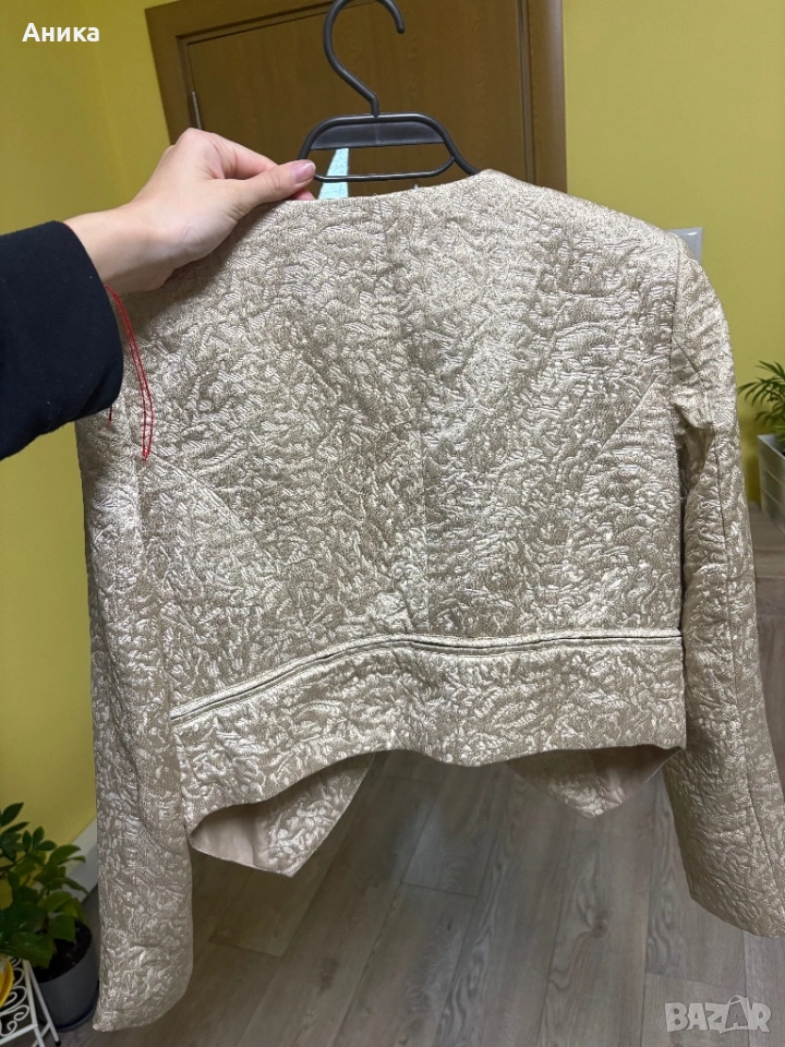Дамско сако в златист цвят. Не е носено! Размер Л, но според мен отговаря на М.