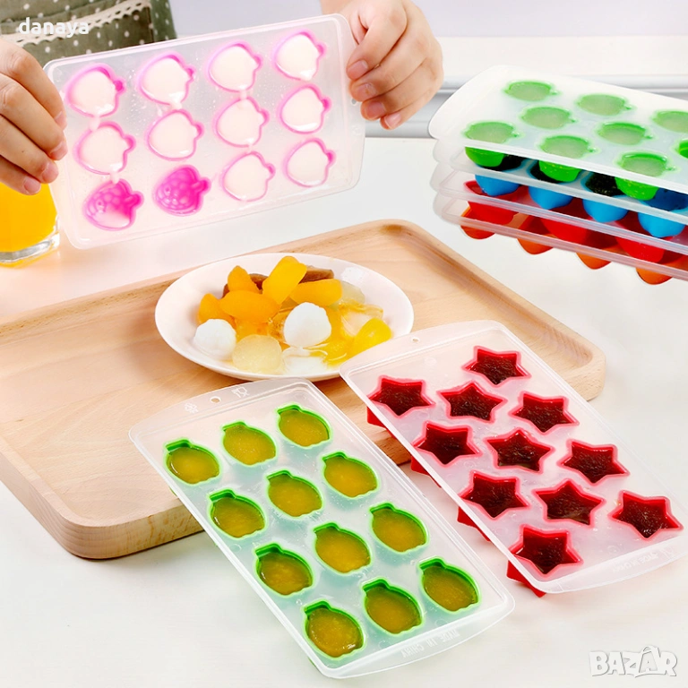 Тези форми за лед с плодови и звездни мотиви са идеални както за възрастни, така и за деца – правят водата и напитките по-атрактивни, а домашните десерти по-забавни. Подходящи са за използване във фризер и хладилник, без да поемат миризми и без да променят вкуса на съдържанието.