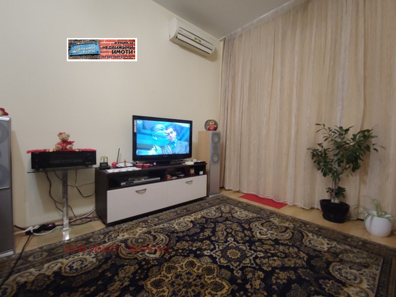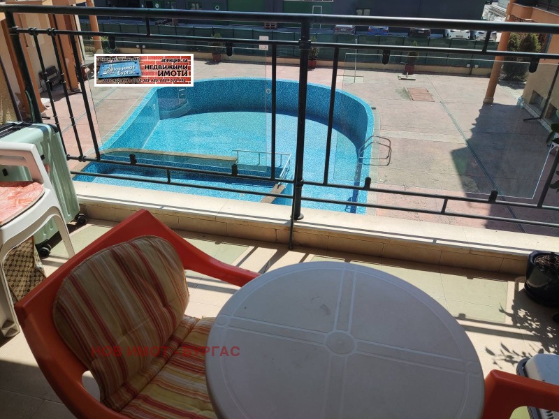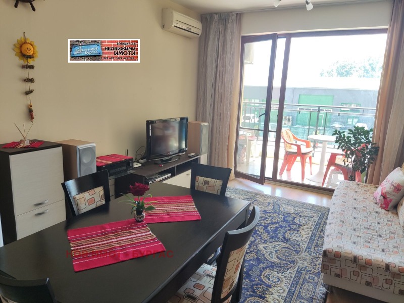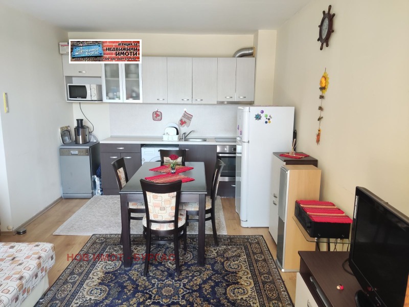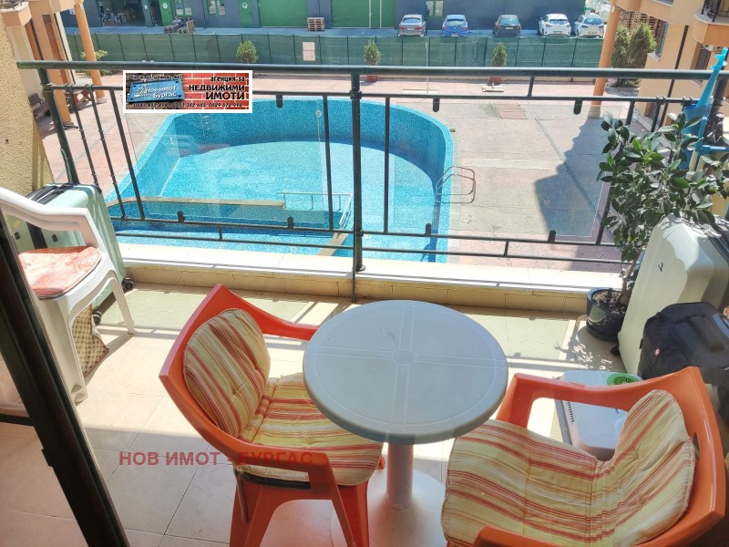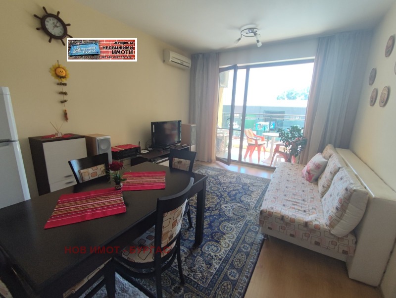 ' Нов имот - Бургас 'продава двустаен апартамент , обзаведен с южно изложение и ниска такса поддръжка-5 лв/кв.м в к.с 'Слънчив Бряг- комплекс Амадеус 5-целогодишно работещ.Сградата се намира в близост до ресторант Джани,Аквапарк, на минути до хотел Кубан и морето,до целогодишно работещ супермаркет, Аптека, Медицински Център, удобни спирки на автобусен транспорт.Жилището е в отлично състояние, разполага с цялата необходима техника.