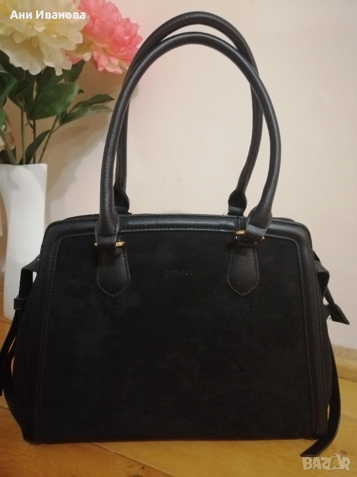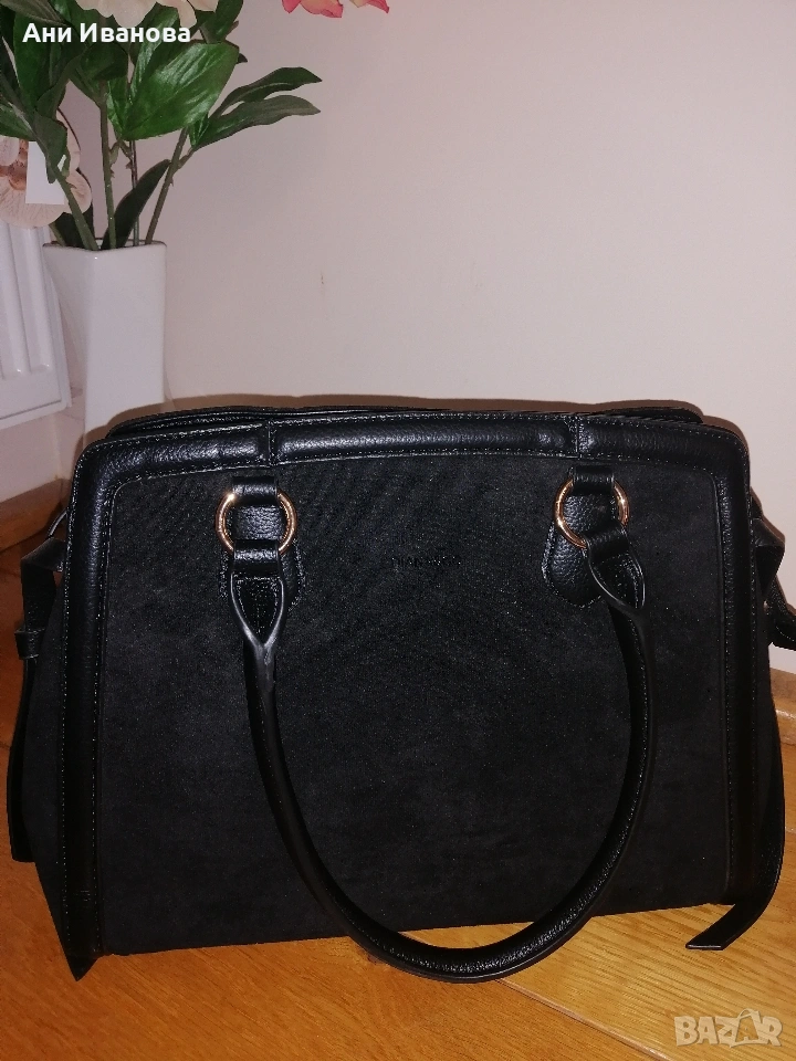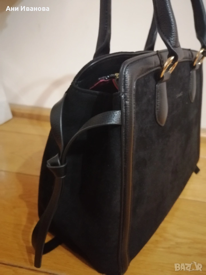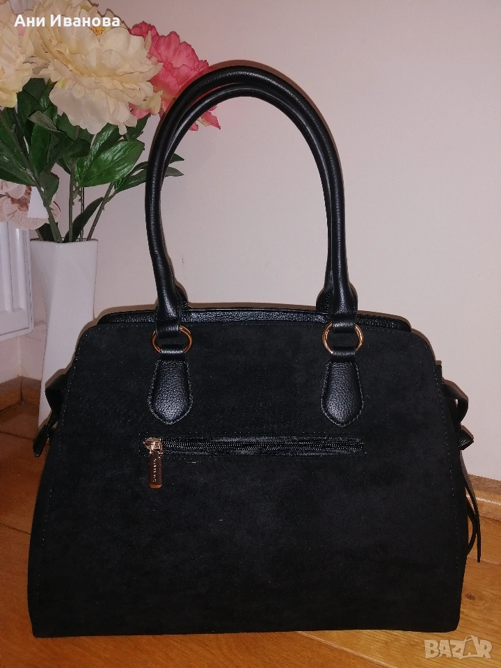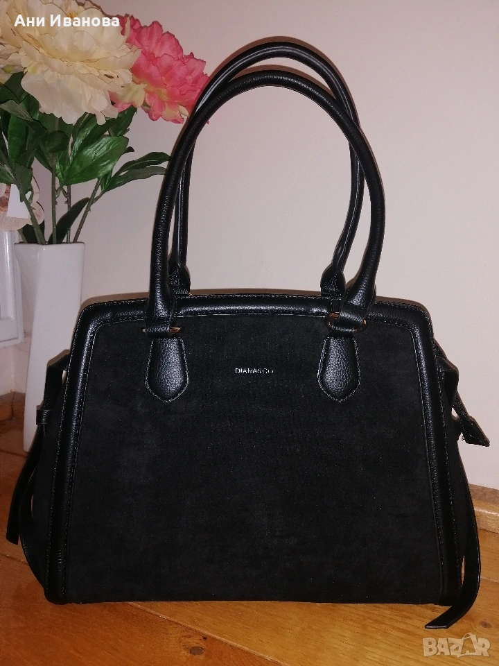 Нова дамска чанта Diana&Co велур, с една преграда и вътрешни джобове.