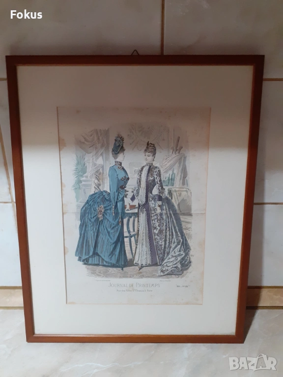 Стара цветна антикварна гравюра в рамка подписана → Обява 53346968