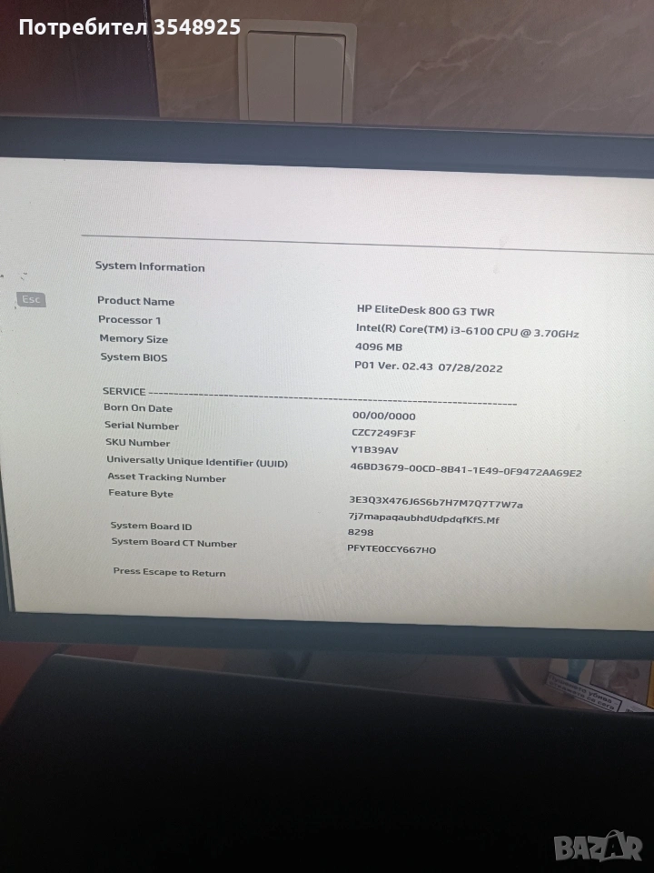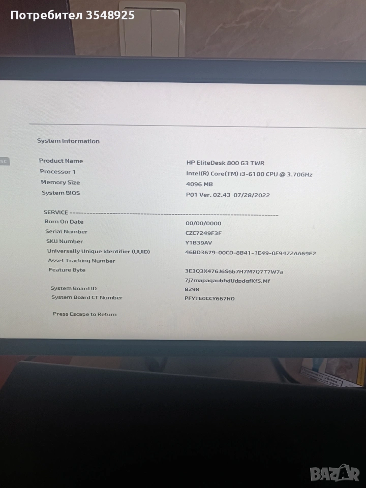 Компютър 2 HP Elite Deck 800 G3 TWR Core i3-6100 → Обява 53347209
