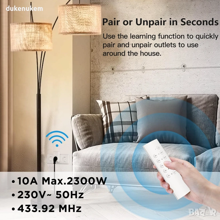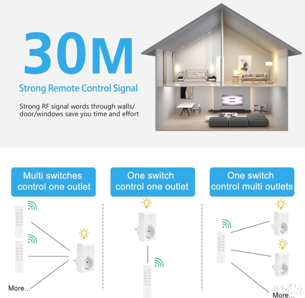 Силен RF сигнал 433.92 MHz – преминава през стени и врати