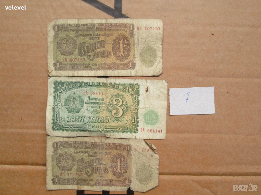 Български банкноти от 1951 г. -- 3 броя