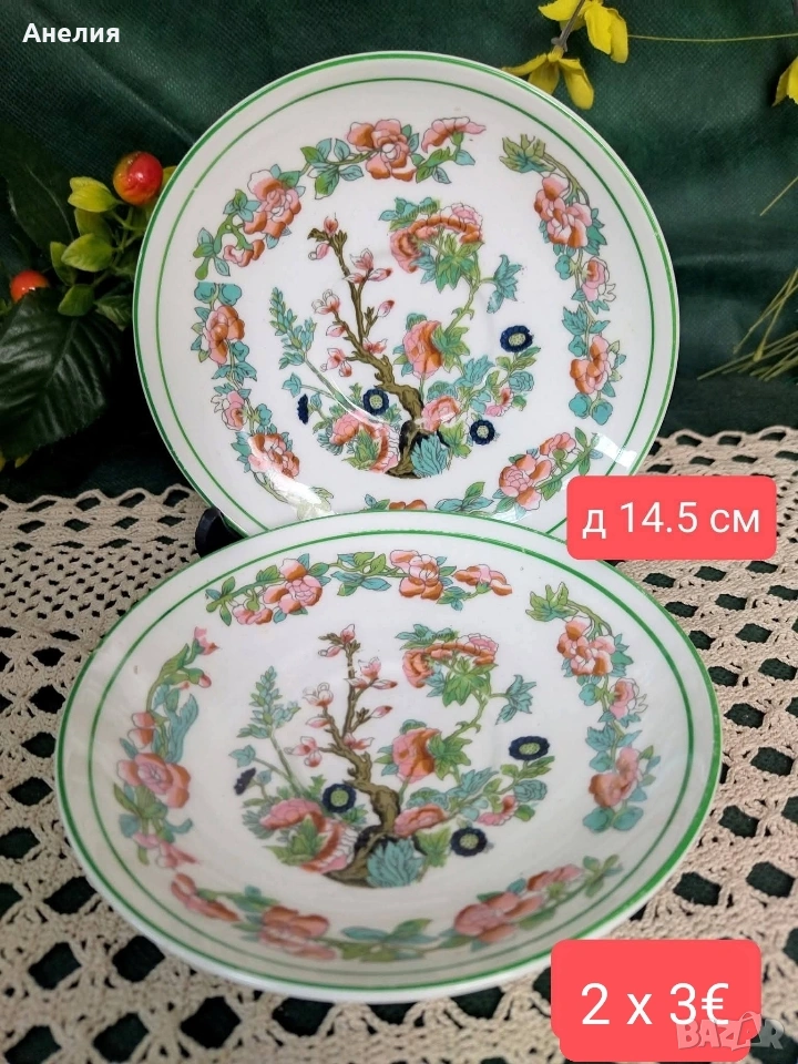 🌸2 десертни чинии 17 см , но за жалост с пукнатина отзад х 2 лв./1€