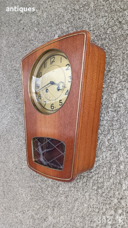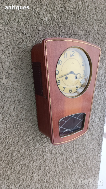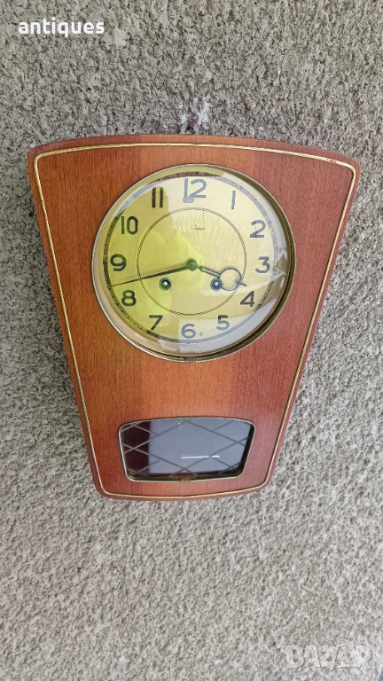Има гонг който бие на половин и на кръгъл час. По схемата - на всеки половин час по веднъж, а на всеки кръгъл бие толкова пъти колкото е часа. Часовника е много красив и рядък модел! Страхотна придобивка за ценители. Антика!