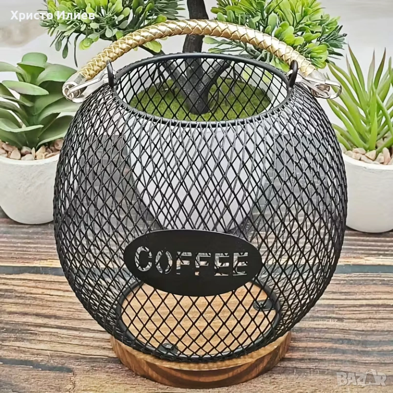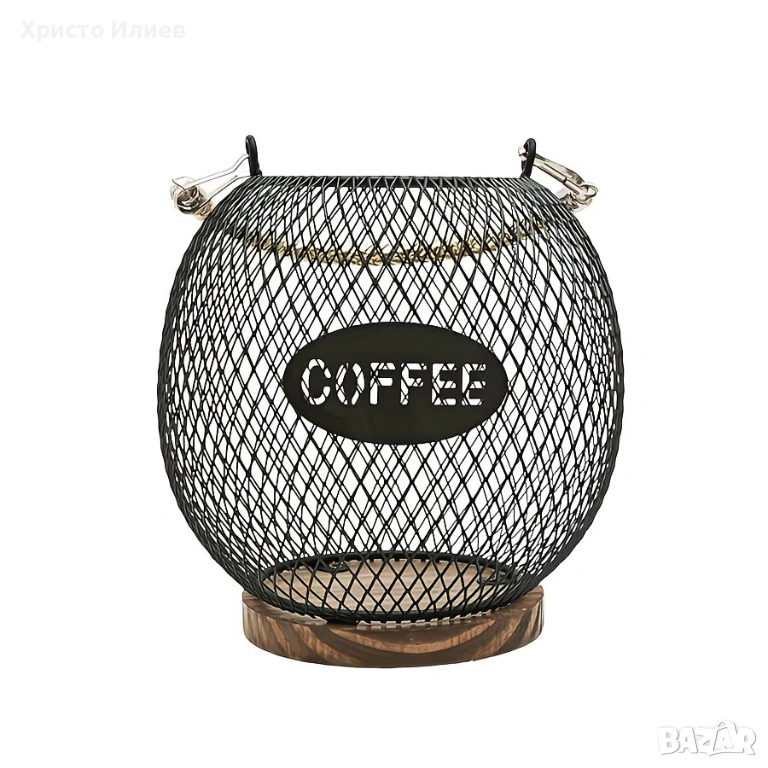 - Дизайн: Сферична форма с надпис "COFFEE"