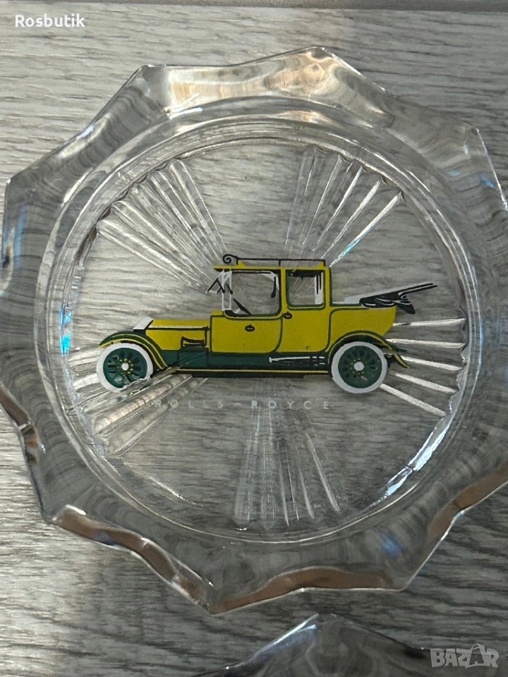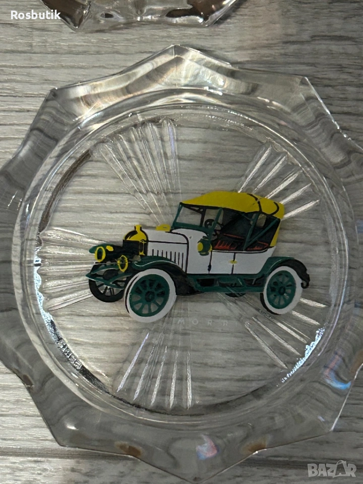 Старинен стъклен комплект с ретро коли → Обява 53347938