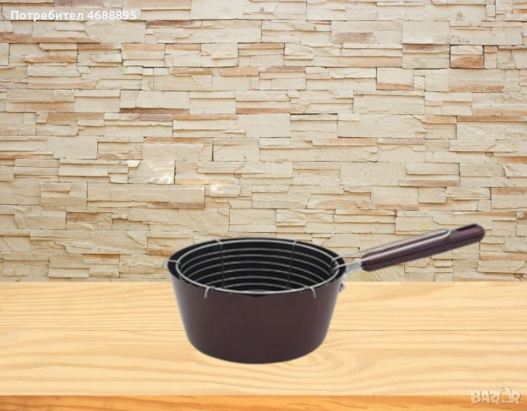 Незалепваща вътрешност Външно покритие, устойчиво на топлина и корозия Удобна за употреба и лесна за почистване Включена кошница за пържене Диаметър: 22 см. Височина 10.5 см. Дебелина: 0.7 мм. Подходящ за газови и електрически котлони