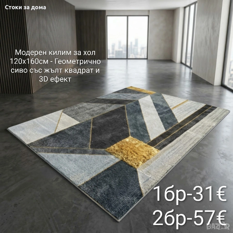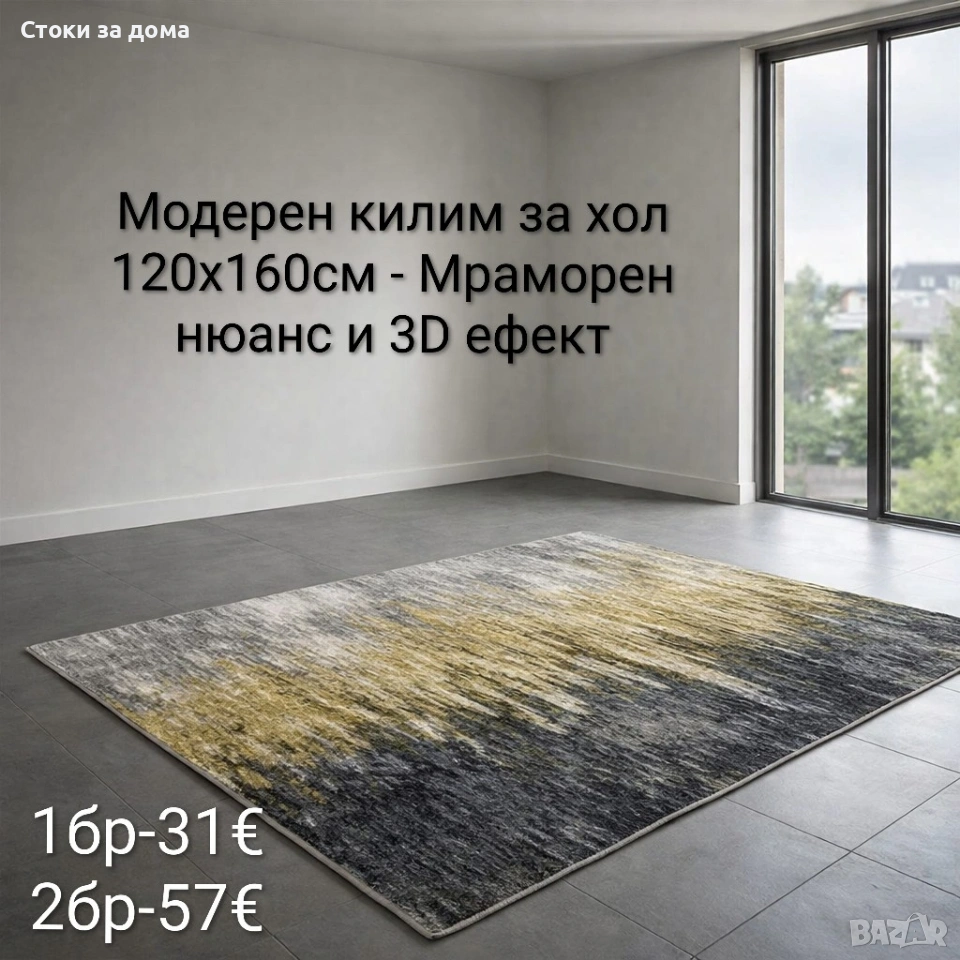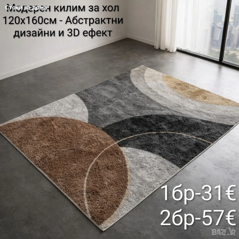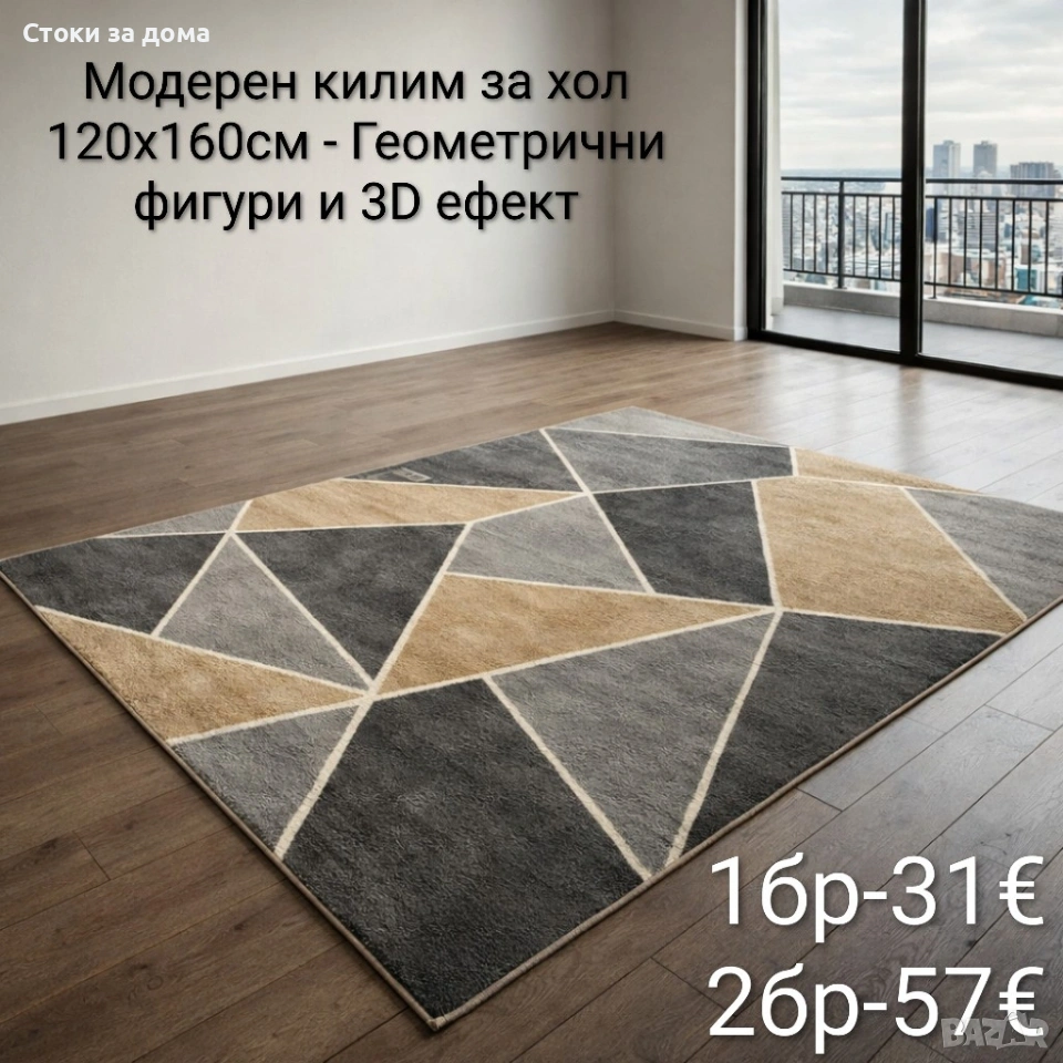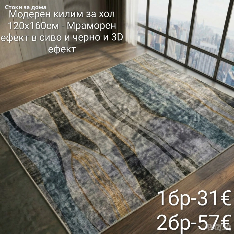 Модерен килим за хол 120х160см с 3D ефект, противоплъзгащ