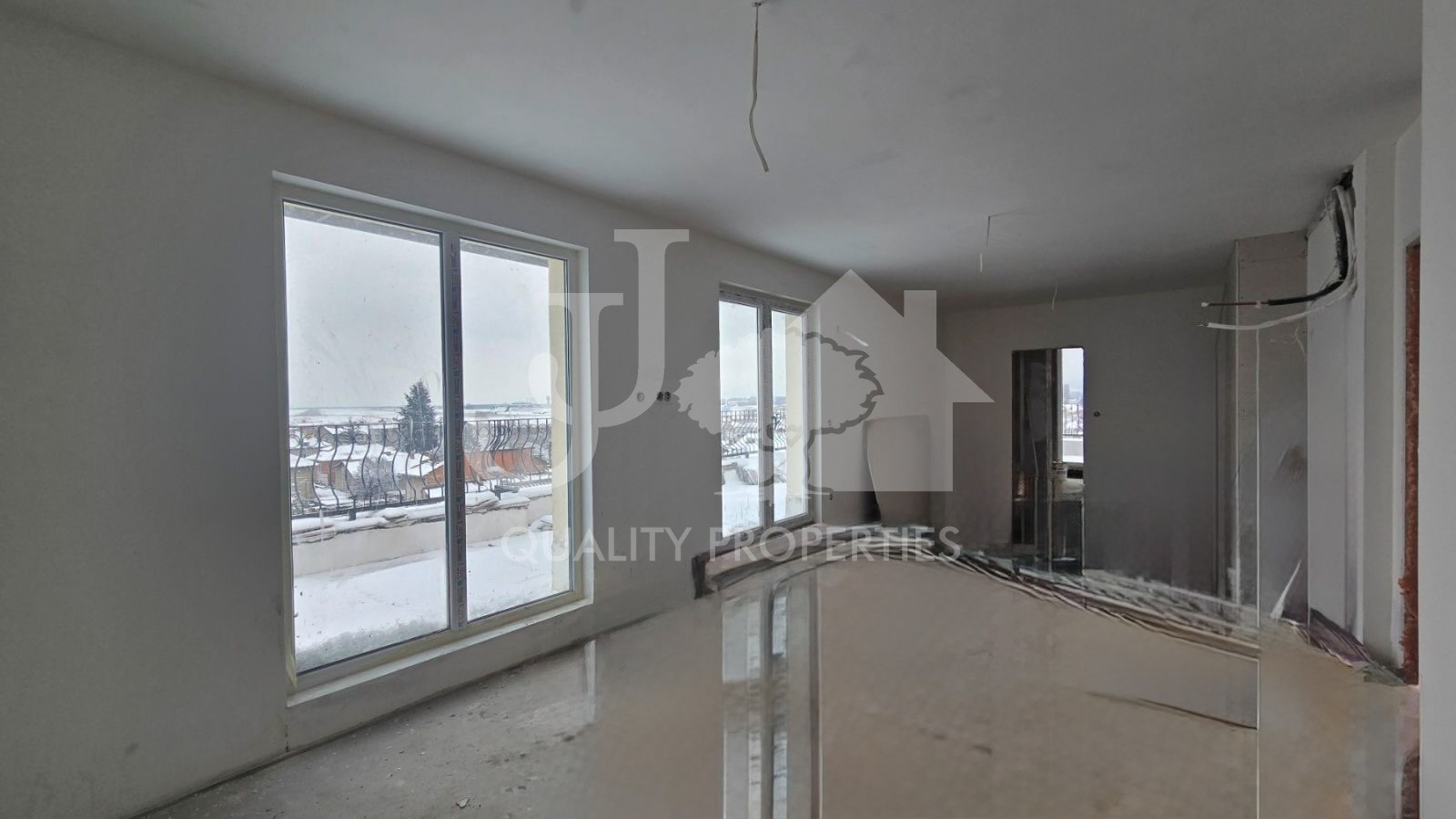 Агенция Джей и Джей корпорейшън предлага на Вашето внимание великолепен пентхаус в нова сграда с разрешение за ползване. Имотът създава усещане за къща с двор, защото е ограден от всички страни с тераса и осигурява изумителна 360-градусова гледка към цяла София и заобикалящите я планини. За комфорта на бъдещите собственици е осигурен личен достъп на асансьора направо в жилището. Документално имотът съставлява два апартамента, физически обединени в един. Апартаментът е със застроена площ от 160 кв.м. и се състои от хол с трапезария и кухня, мокро помещение с баня и тоалетна, просторна главна спалня със собствена баня с тоалетна и голям светъл дрешник и две самостоятелни спални. Отоплението на имота е предвидено с изградена навсякъде подова инсталация с термопомпа, но са изведени и изводи за климатици във всички стаи. Има възможност за покупка на подземни гаражи.