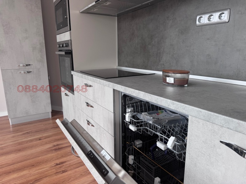 Чисто нова кухня с микровълнова, котлони, фурна, хладилник, съдомиялна.