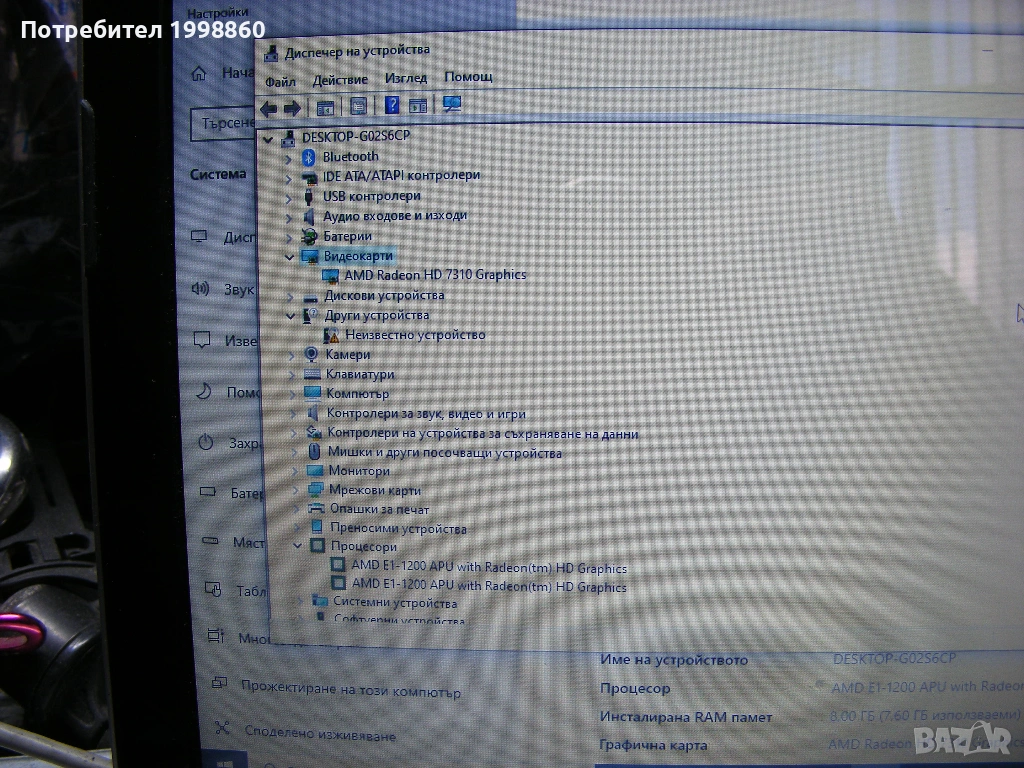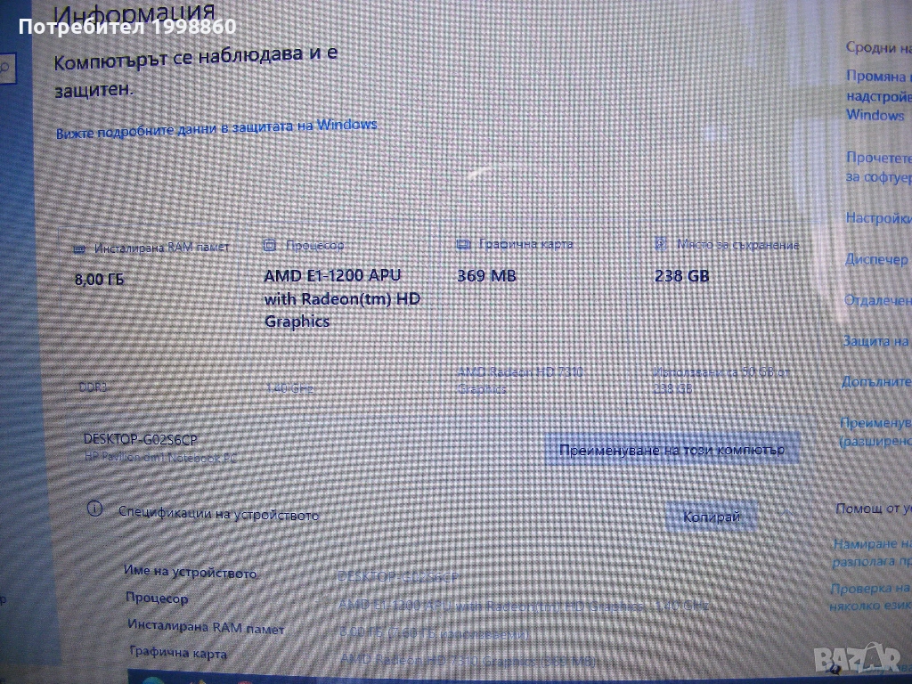 Работещ лаптоп за части HP Pavilion dm1 -4200 → Обява 53348274