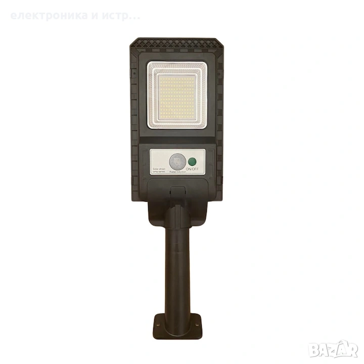 Системата на тази соларна лампа 800W е изцяло автономна, през светлата част на деня се зарежда батерията, а веднага след като се стъмни осветлението се включва автоматично, благодарение на сензорите които са в соларния панел. Соларната улична лампа е интелигентна система за външно осветление, която интегрира най-добрите енергоспестяващи части – фотоволтаичен панел, осветително тяло, сензор, контролер и литиева батерия, всичко това в една кутия. През деня високоефективният слънчев панел събира енергия от слънцето и я съхранява в усъвършенстваната литиева батерия.