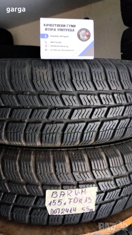 марка - BARUM 155X70R13 DOT 2414 грайфер 5.5 мм. 2 броя цена/брой 10 евро.