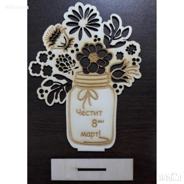 Подарък за 8 март – дървена декорация с цветя “Честит 8-ми март” → Обява 53349178