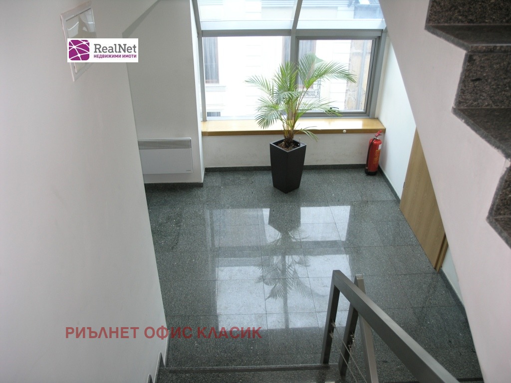 Самостоятелна, луксозно изпълнена в съвременен дизайн, бизнес сграда със собствен двор, разположена в идеалния център на град София. Местоположение: ул. Чипровци, на кратко пешеходно разстояние от административната зона на столицата, в непосредствена близост до няколко големи булеварда, спирки на комуникативен градски транспорт и метро, осигуряващи бърза комуникация до всяка точка на града. Общата площ на сградата 1100м2, от които офис частта е 800м2, включваща пет етажа с работни помещения, богати възможности за преразпределение на вътрешното пространство за обособяване на разнообразни по вид и големина офиси, голяма тераса с красив изглед, сервизни помещения на всеки етаж, панорамен асансьор. Подземни и надземни паркоместа, осигурени на площ от 300м2. Чиста застроена площ на етажите е: I-ви етаж 114,98м2, II-ри етаж 143,50м2, III-ти етаж 140,43м2, IVти етаж 138,31м2, Vти етаж 108,78м2. Подови настилки, стени и дограма: гранитогрес, фаянс и теракот, ламиниран паркет, алуминиева дограма, латекс. Отопление: климатици и локално отопление с ток. Двоен под със структурно окабелявяне, безжична мрежова инфраструктура. Рецепция, видеонаблюдение, контролиран достъп и други модерни съоръжения. Международен стандарт за поддръжка. За повече информация - Аделина Шопова, тел. 0898/595406. Още подобни оферти може да видите на адрес: www.realnet.bg