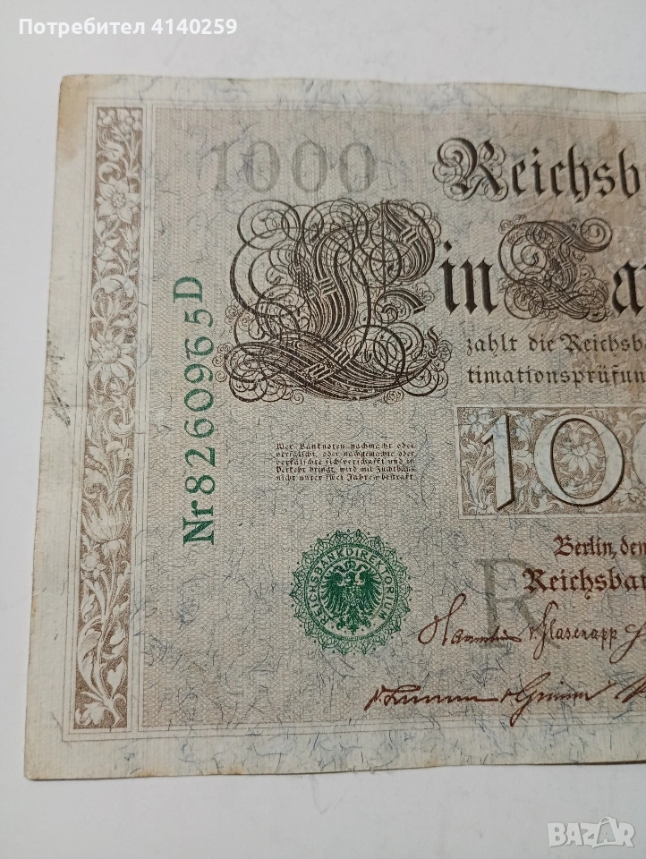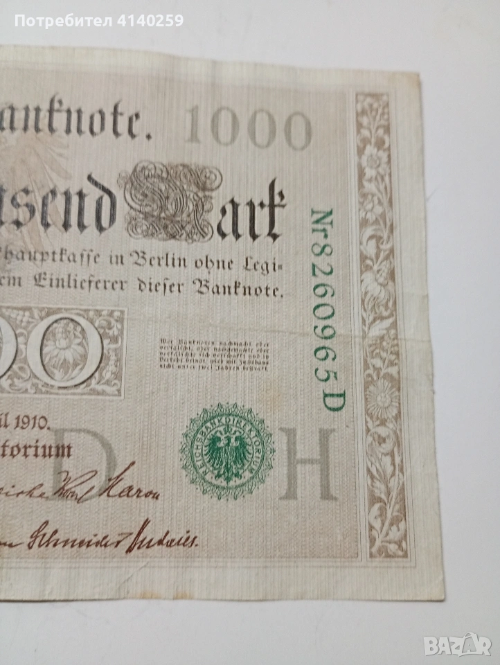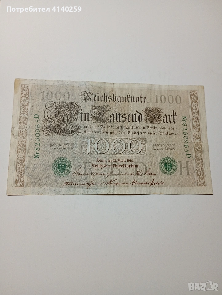 ГЕРМАНИЯ БАНКНОТА 1000 МАРКИ 1910 Г → Обява 53349408