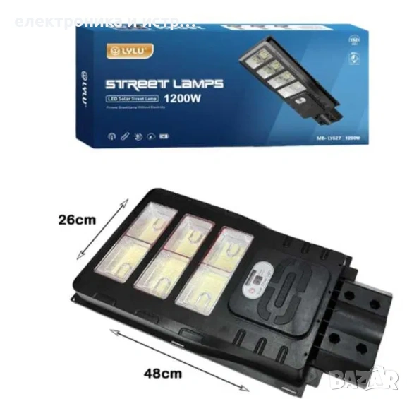 Соларна лампа LYLU 1200W с 6 секциионни прожектора е ефективно външно осветление със соларен панел. Това усъвършенствано решение за осветление е идеално за осветяване на обширни външни пространства като улици, паркове, пазари, градински пътеки и много други области, които изискват мощен и надежден източник на светлина. Със забележителна мощност от 1200W, соларната лампа LYLU осигурява обширно и интензивно осветление, способно да покрие големи площи с ясна и постоянна светлина. Снабдена е с 6 секциионни прожектора, които са проектирани да максимизират улавянето на слънчевата енергия, ефективно превръщайки слънчевата светлина в електричество, съхранявано в здрави батерии.