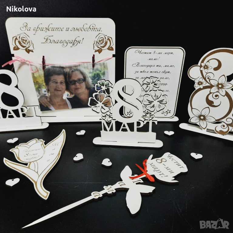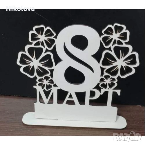 Елегантна осмица със стойка и флорални елементи, изработена от бял MDF – стилен акцент за дома или офиса и мил подарък за празника.
